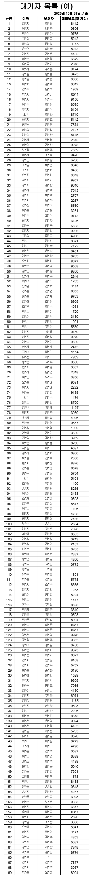 2025³â 10¿ù ¿©ÀÚ ´ë±âÀÚ ¸í´Ü
