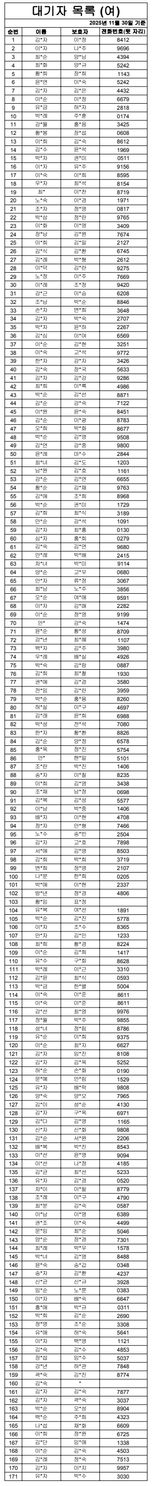 2025³â 11¿ù ¿©ÀÚ ´ë±âÀÚ ¸í´Ü