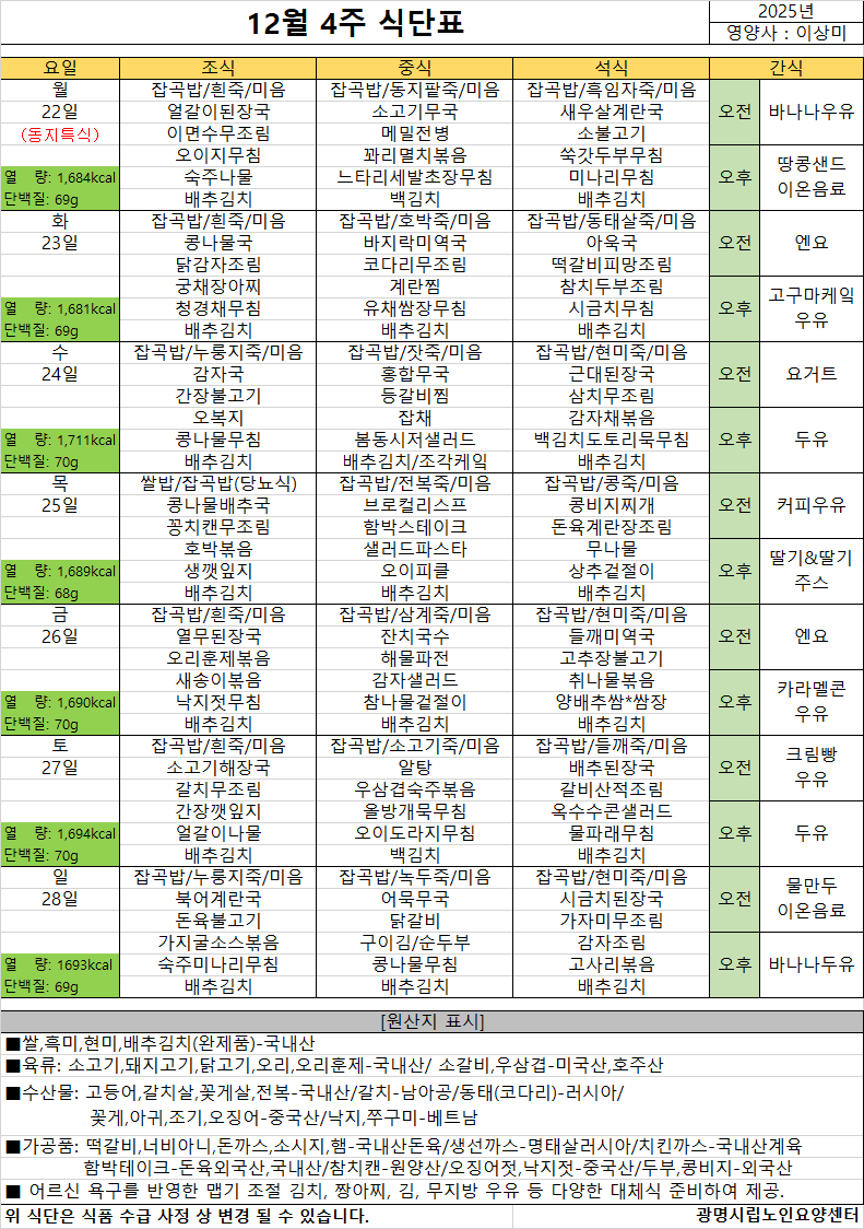 2025³â 12¿ù 4ÁÖ ½Ä´ÜÇ¥