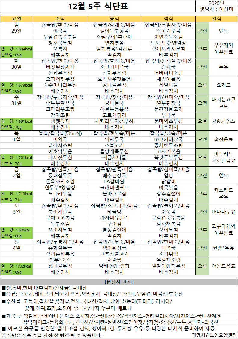2025³â 12¿ù 2ÁÖ ½Ä´ÜÇ¥