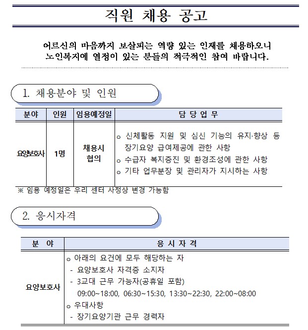 ±¤¸í½Ã¸³³ëÀοä¾ç¼¾ÅÍ Á÷¿ø(¿ä¾çº¸È£»ç) ä¿ë °ø°í