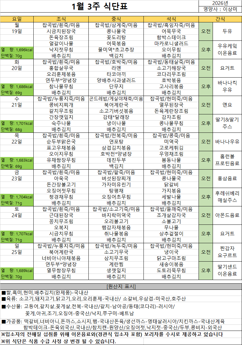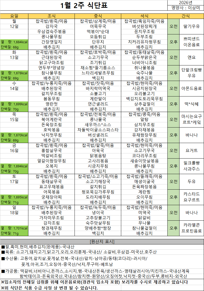 2026³â 1¿ù 2ÁÖ ½Ä´ÜÇ¥