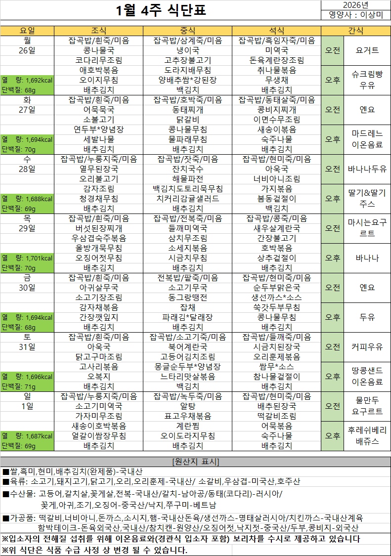 2026³â 1¿ù 4ÁÖ ½Ä´ÜÇ¥