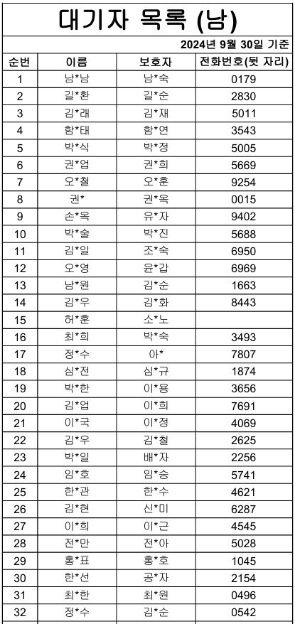 2024³â 9¿ù ³²ÀÚ ´ë±âÀÚ ¸í´Ü