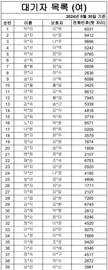 2024³â 9¿ù ¿©ÀÚ ´ë±âÀÚ ¸í´Ü