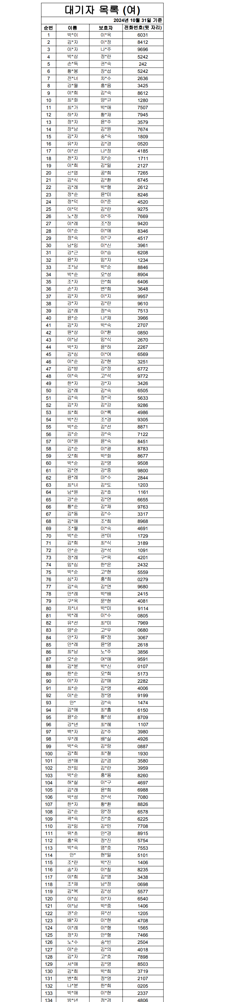 2024³â 10¿ù ¿©ÀÚ ´ë±âÀÚ ¸í´Ü