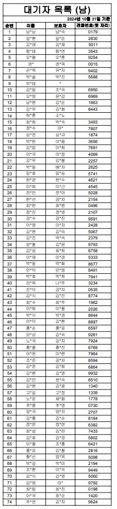 2024³â 10¿ù ³²ÀÚ ´ë±âÀÚ ¸í´Ü