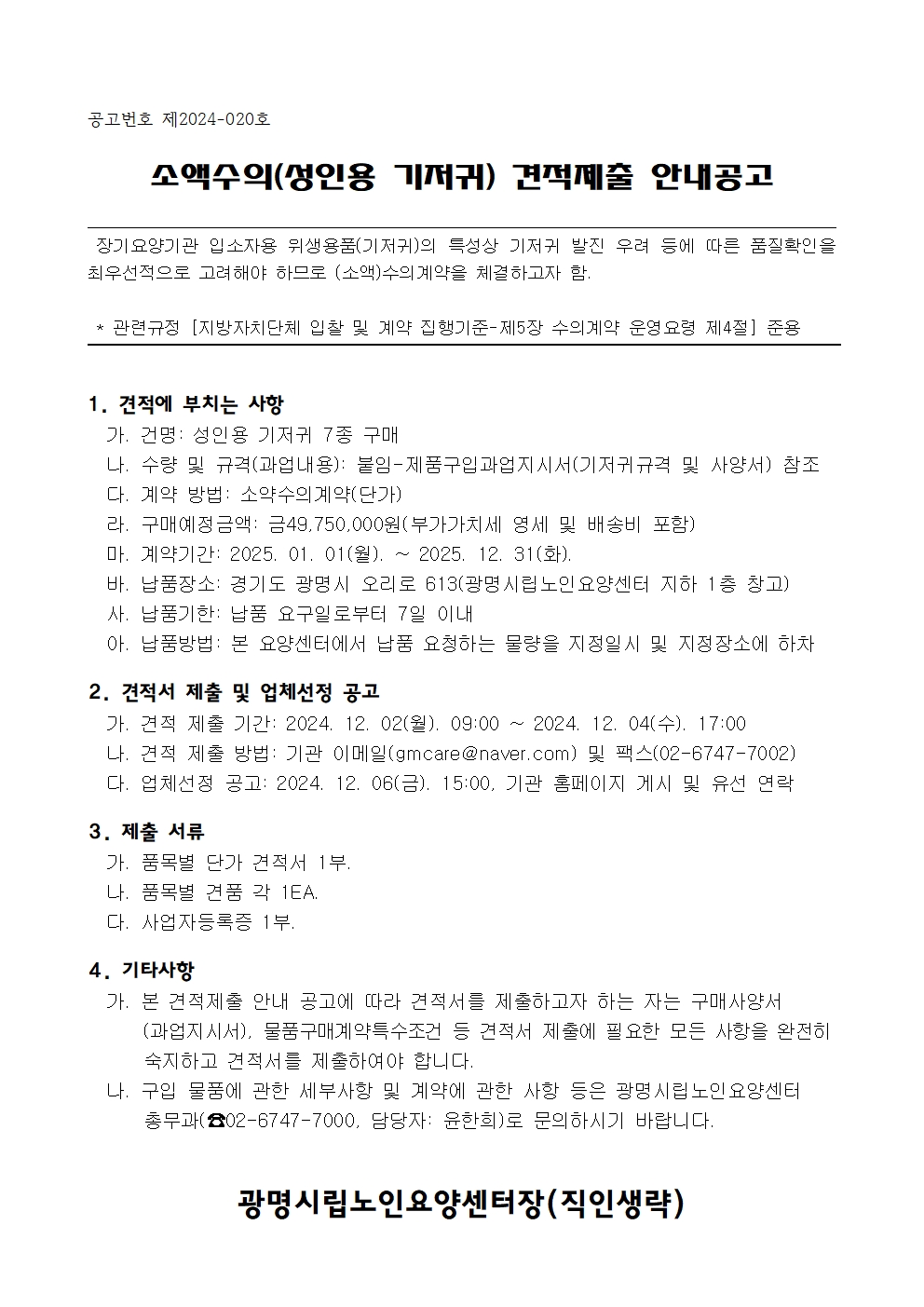 2025³â ±¤¸í½Ã¸³³ëÀοä¾ç¼¾ÅÍ ¼ºÀÎ¿ë ±âÀú±Í ¼öÀǰè¾à °ø°í