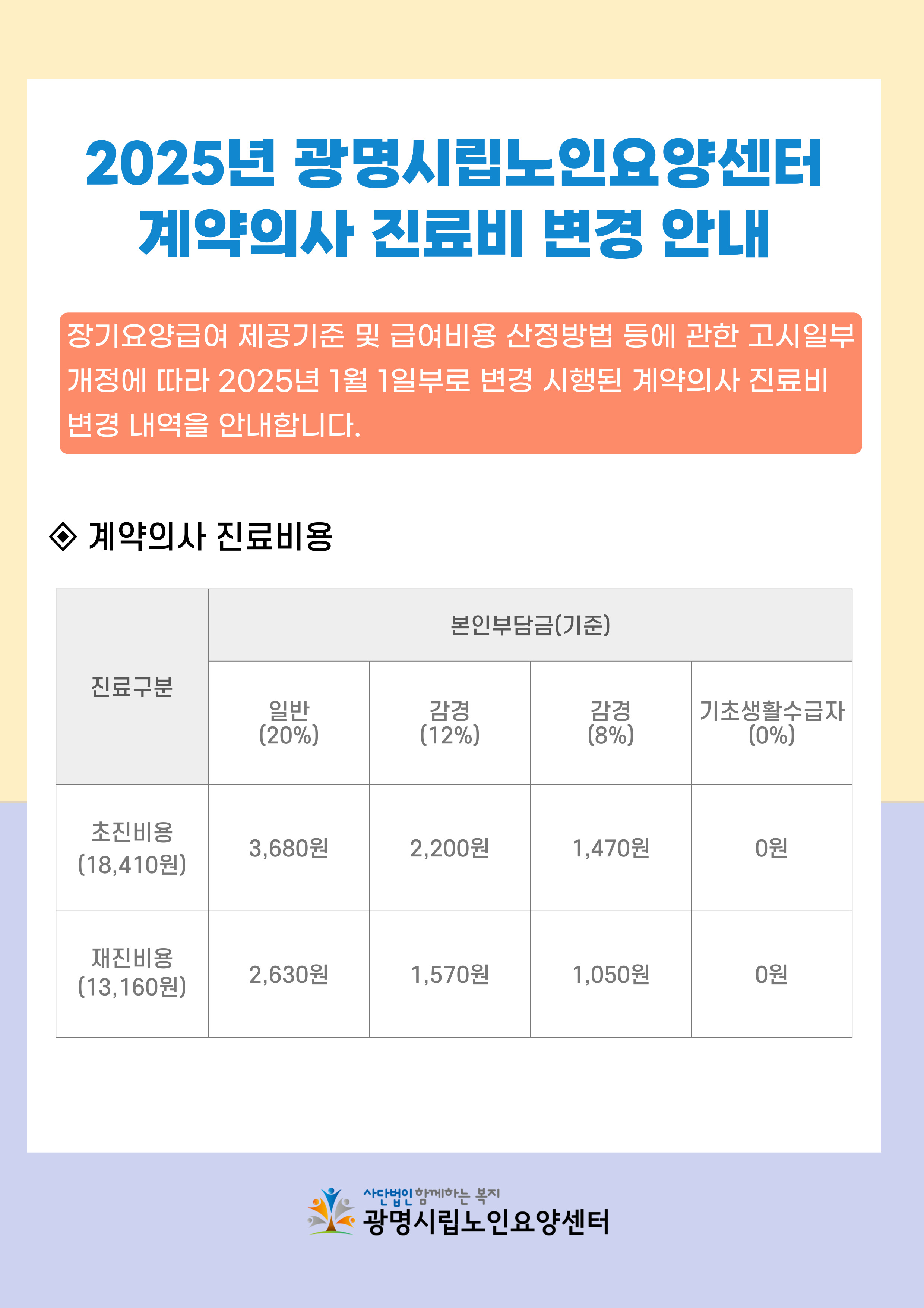 2025³â ±¤¸í½Ã¸³³ëÀοä¾ç¼¾ÅÍ °è¾àÀÇ»ç Áø·áºñ º¯°æ ¾È³»