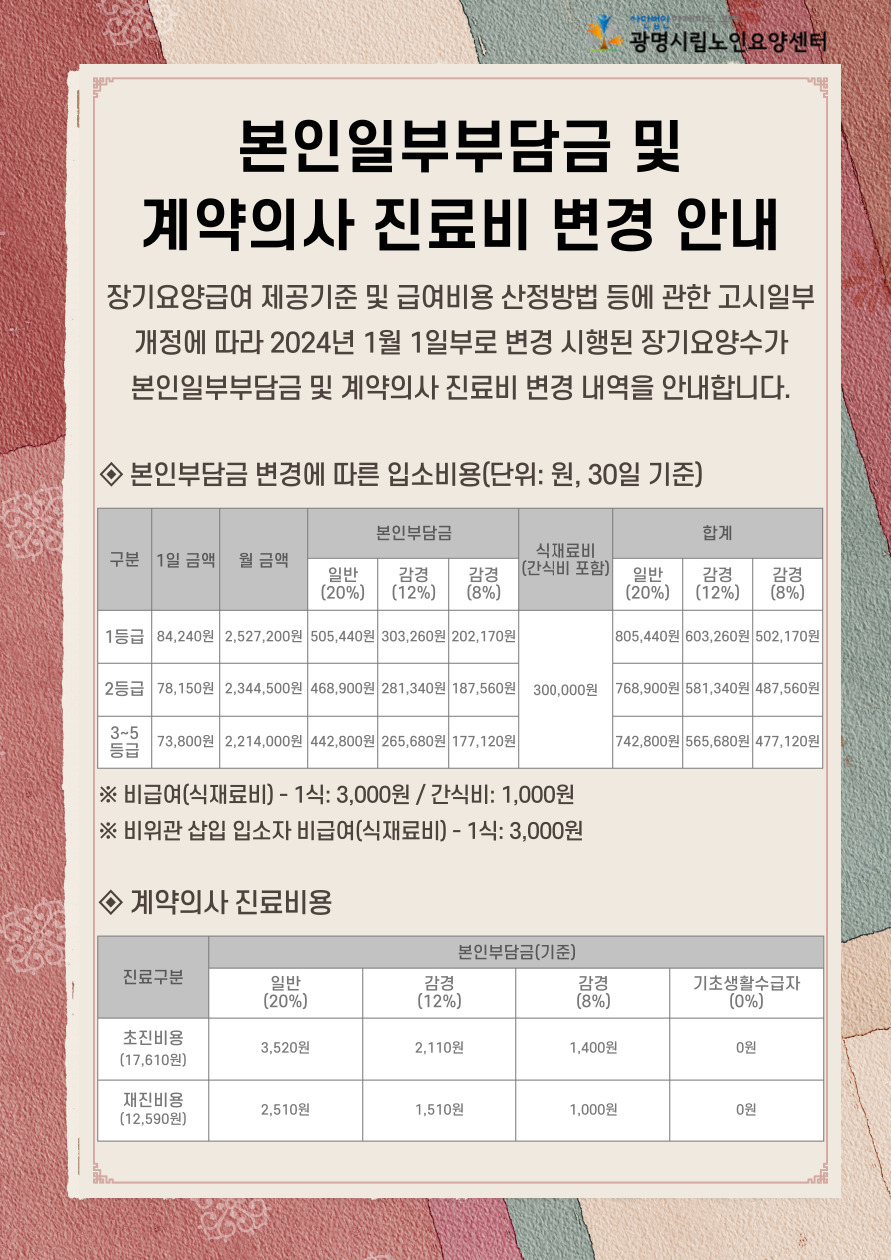 2024³â º»ÀÎÀϺκδã±Ý ¹× °è¾àÀÇ»ç Áø·áºñ º¯°æ ¾È³»
