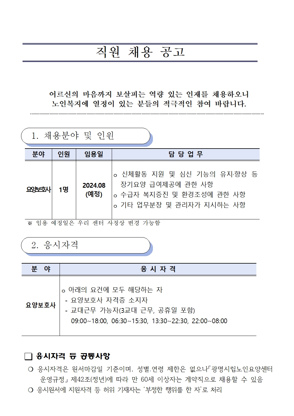 Á÷¿øÃ¤¿ë°ø°í(¿ä¾çº¸È£»ç) ±ä±Þ.hwp