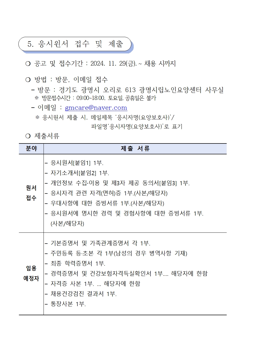 Á÷¿øÃ¤¿ë°ø°í(¿ä¾çº¸È£»ç)_241129.hwp