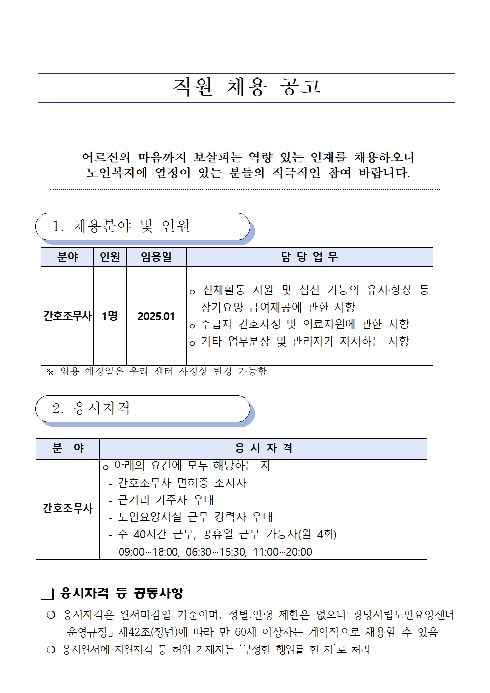 ±¤¸í½Ã¸³³ëÀοä¾ç¼¾ÅÍ °£È£Á¶¹«»ç ä¿ë °ø°í