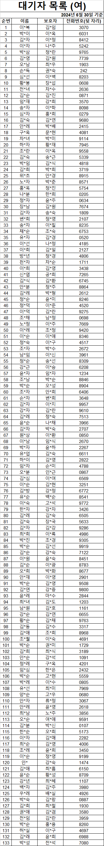 2024³â 6¿ù ¿©ÀÚ ´ë±âÀÚ ¸í´Ü