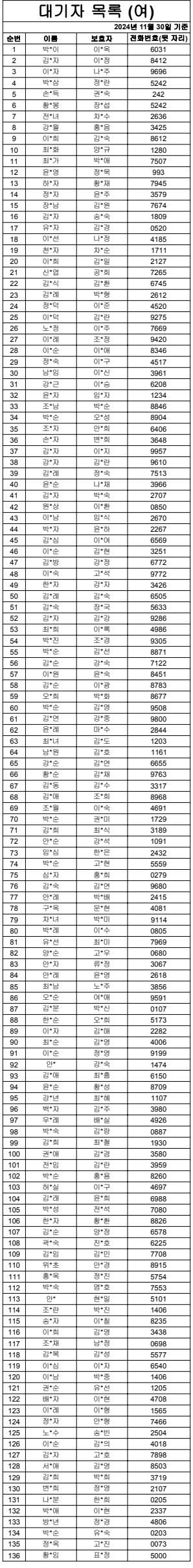 2024³â 11¿ù ¿©ÀÚ ´ë±âÀÚ ¸í´Ü