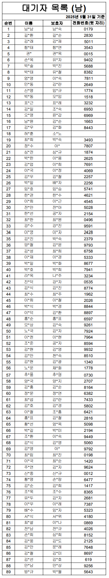 2025³â 5¿ù ³²ÀÚ ´ë±âÀÚ ¸í´Ü