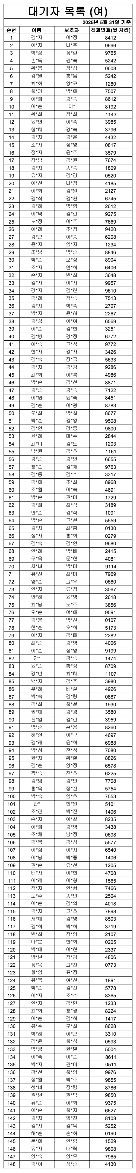 2025³â 5¿ù ¿©ÀÚ ´ë±âÀÚ ¸í´Ü