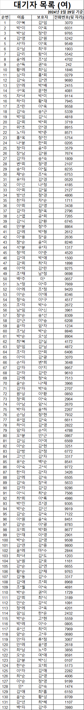 2024³â 2¿ù ¿©ÀÚ ´ë±âÀÚ ¸í´Ü