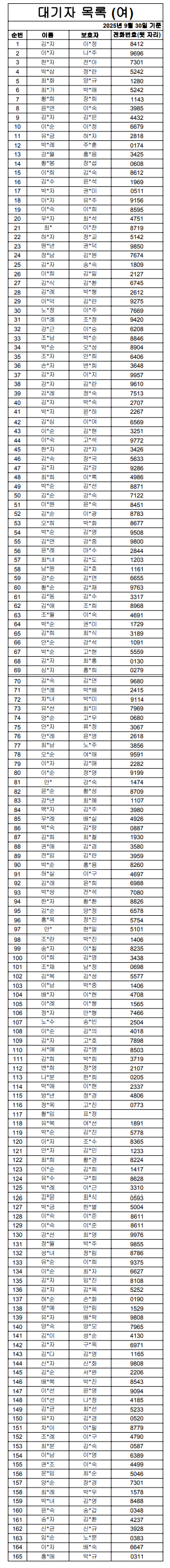 2025³â 9¿ù ¿©ÀÚ ´ë±âÀÚ ¸í´Ü