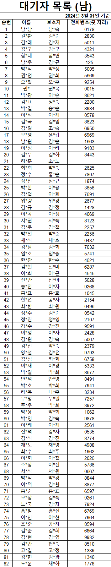 2024³â 3¿ù ³²ÀÚ ´ë±âÀÚ ¸í´Ü