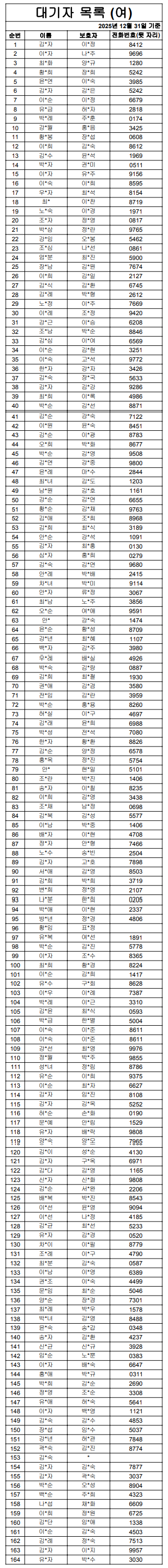 2025³â 12¿ù ¿©ÀÚ ´ë±âÀÚ ¸í´Ü