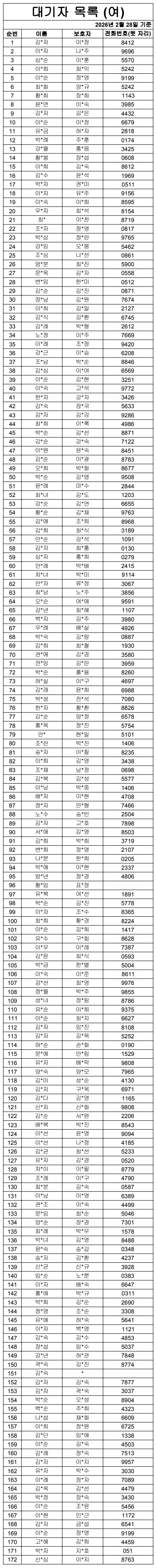 2026³â 2¿ù ¿©ÀÚ ´ë±âÀÚ ¸í´Ü