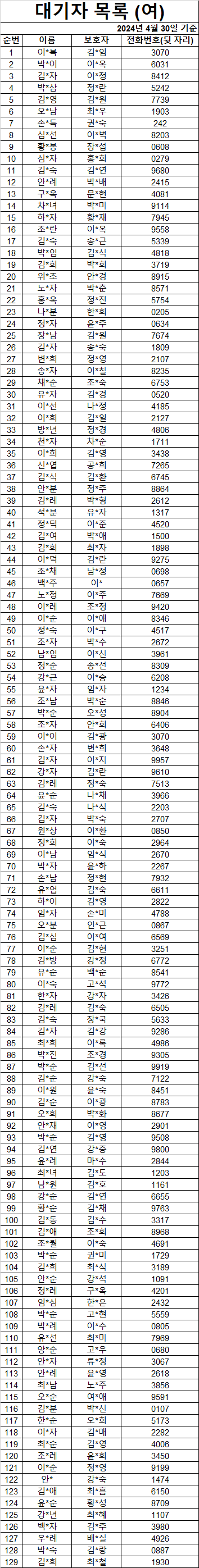 2024³â 4¿ù ¿©ÀÚ ´ë±âÀÚ ¸í´Ü