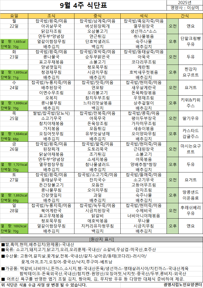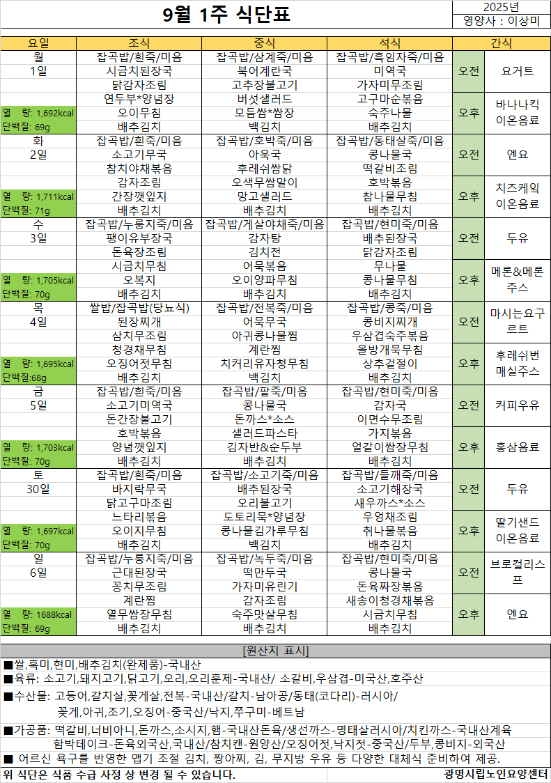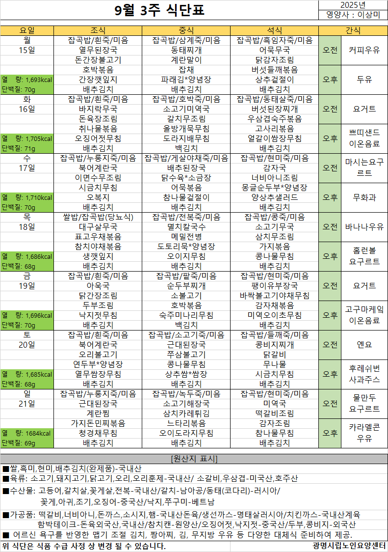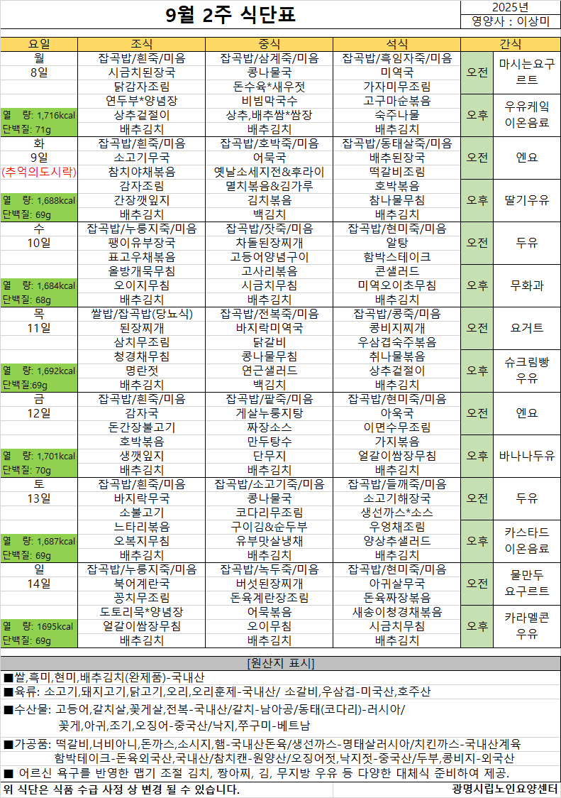 2025³â 9¿ù 2ÁÖ ½Ä´ÜÇ¥