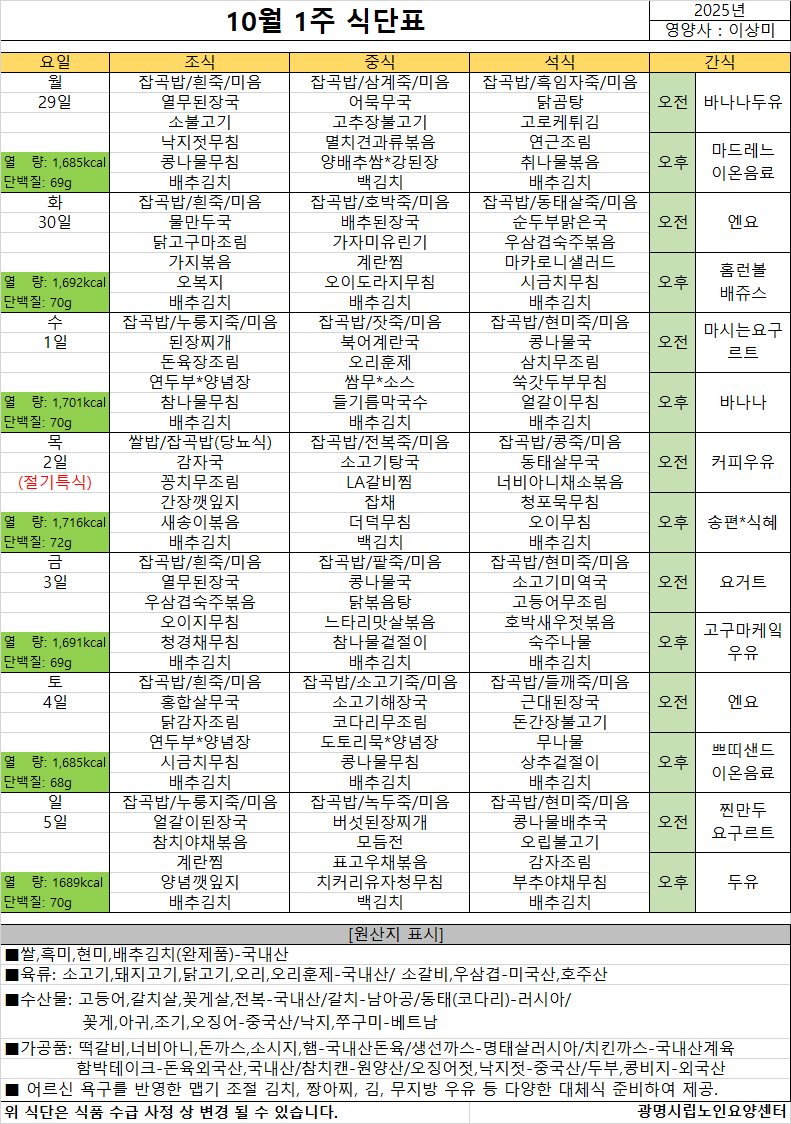 2025³â 10¿ù 1ÁÖ ½Ä´ÜÇ¥