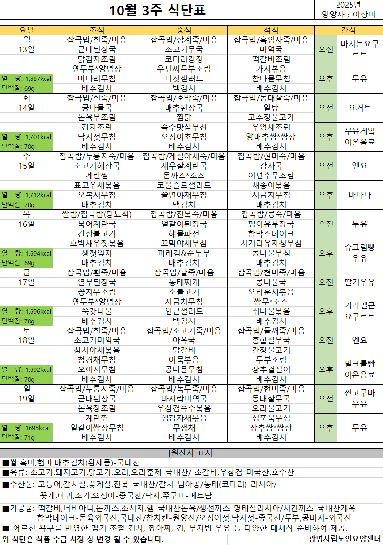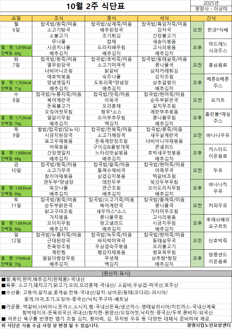 2025³â 10¿ù 2ÁÖ ½Ä´ÜÇ¥