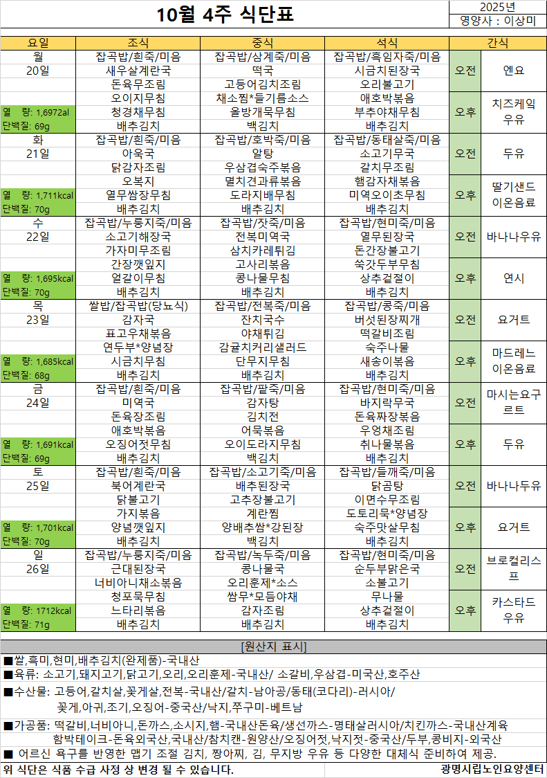 2025³â 10¿ù 4ÁÖ ½Ä´ÜÇ¥