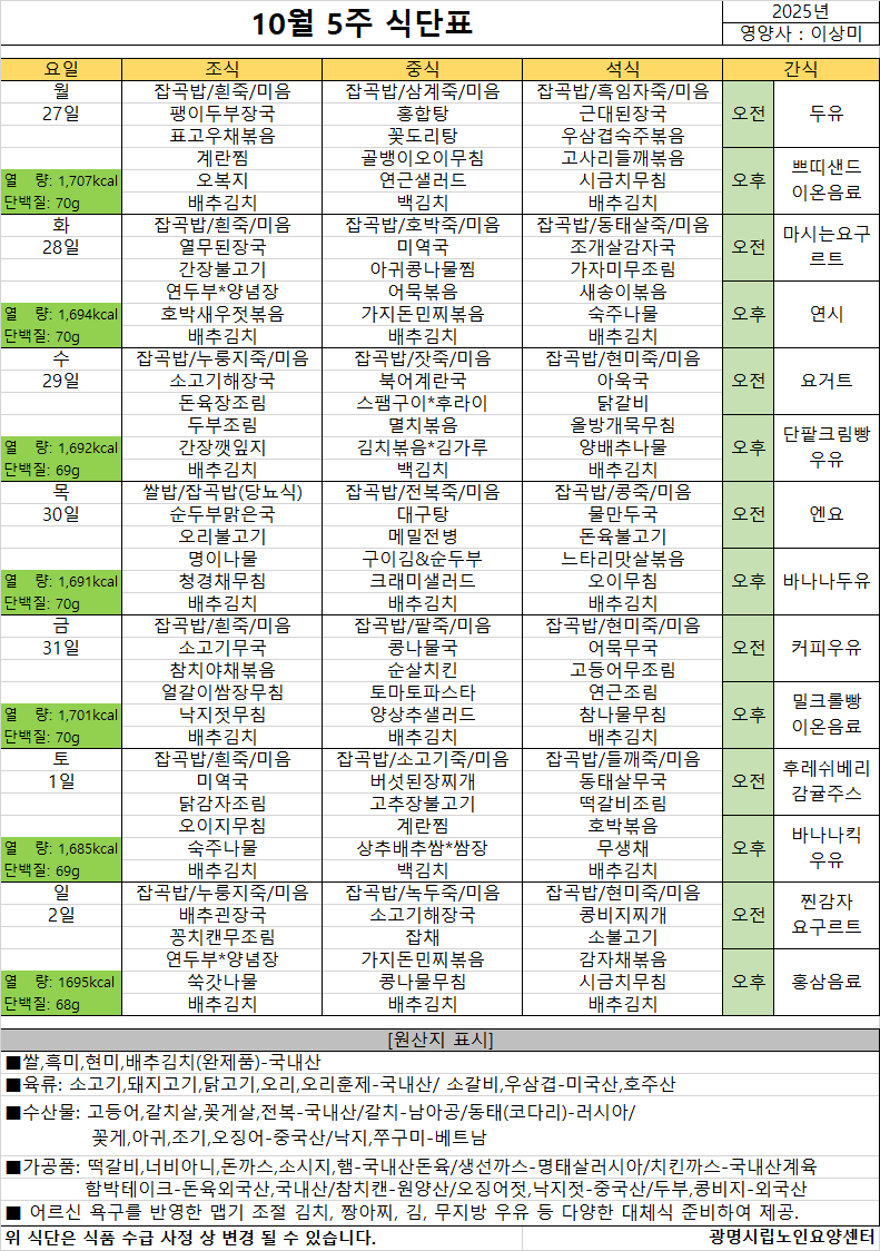 2025³â 10¿ù 5ÁÖ ½Ä´ÜÇ¥