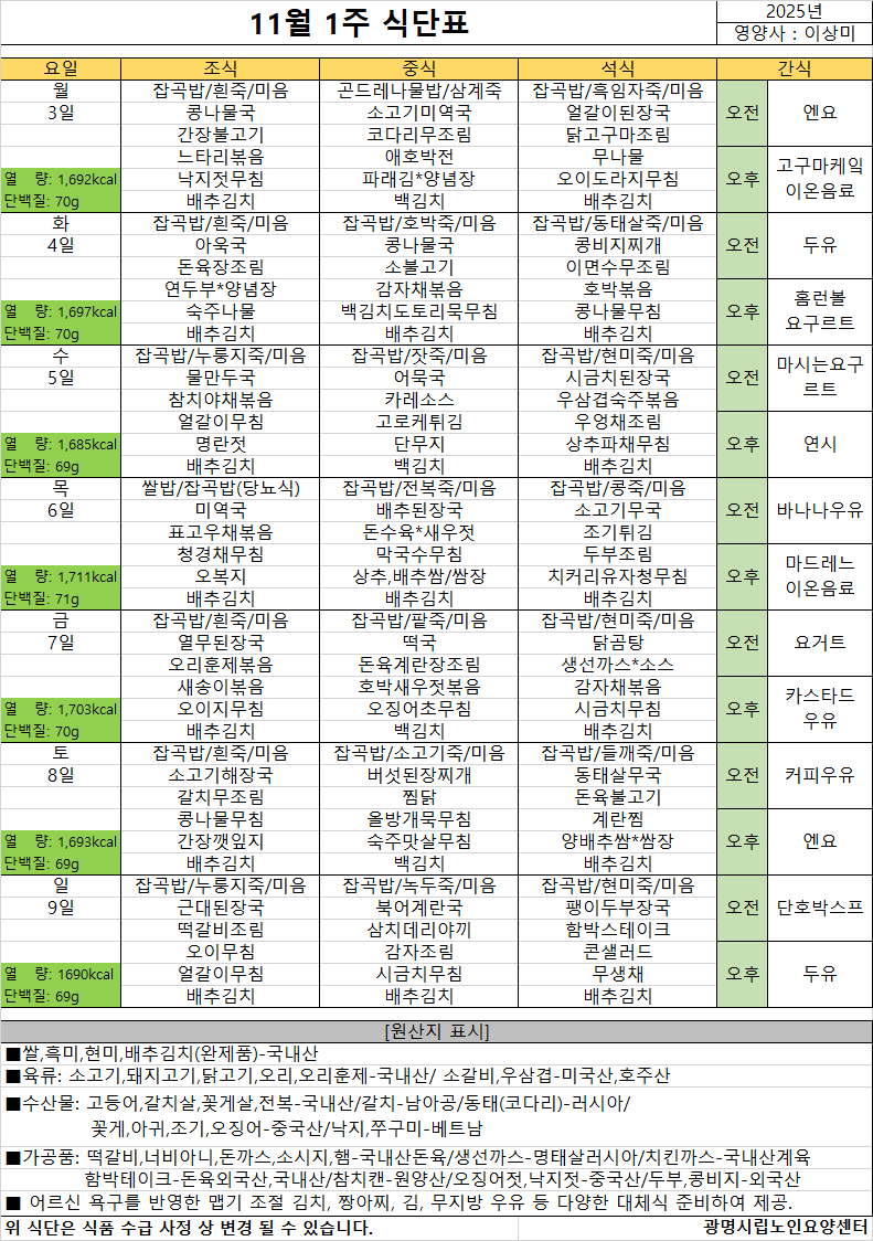 2025³â 11¿ù 1ÁÖ ½Ä´ÜÇ¥