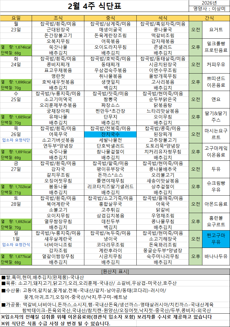 2026³â 2¿ù 2ÁÖ ½Ä´ÜÇ¥