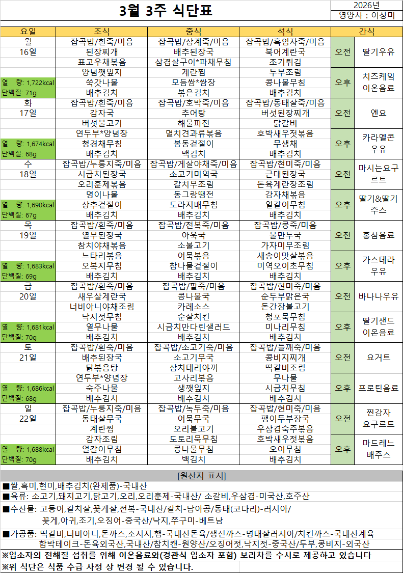 2026³â 3¿ù 2ÁÖ ½Ä´ÜÇ¥
