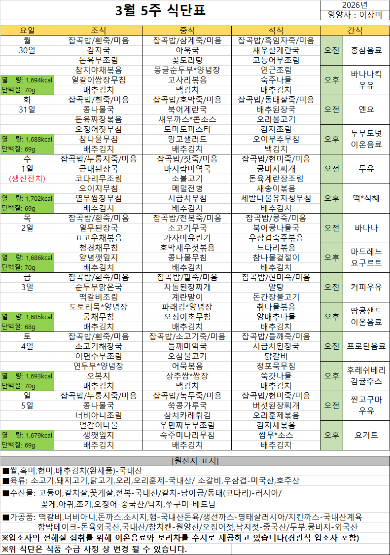 2026³â 3¿ù 1ÁÖ ½Ä´ÜÇ¥