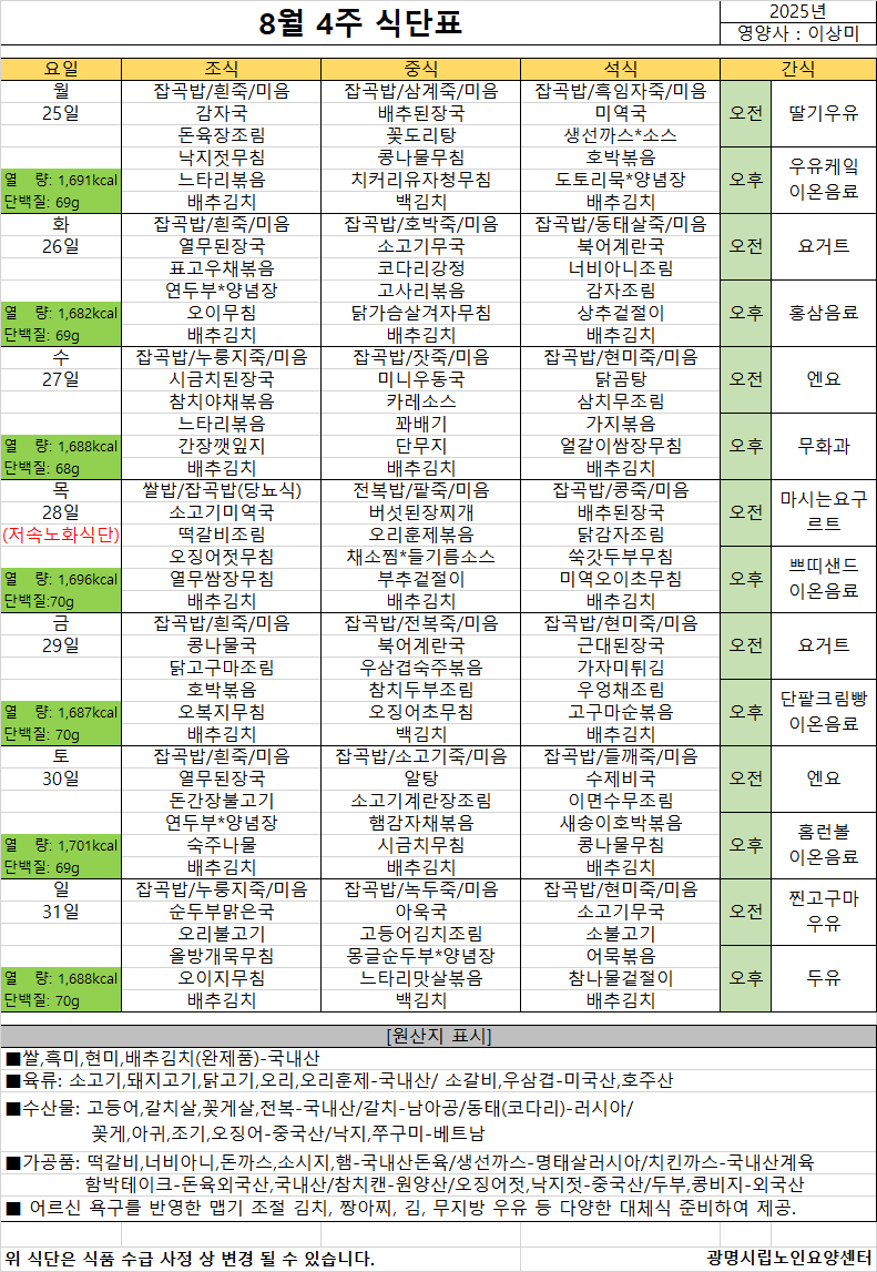 2025³â 8¿ù 4ÁÖ ½Ä´ÜÇ¥