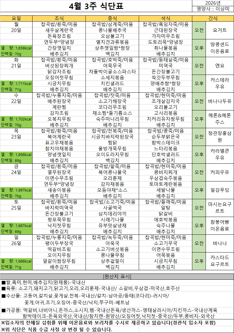 2026³â 4¿ù 2ÁÖ ½Ä´ÜÇ¥