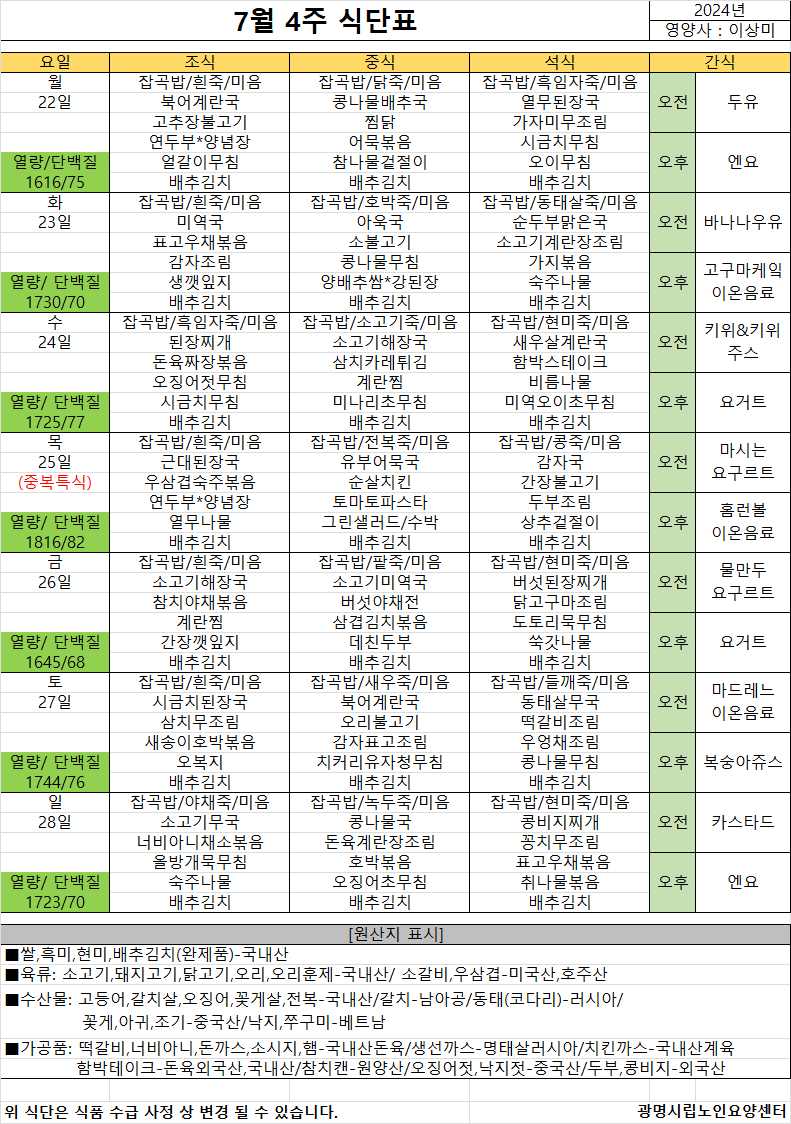 2024³â 7¿ù 4ÁÖÂ÷ ½Ä´ÜÇ¥