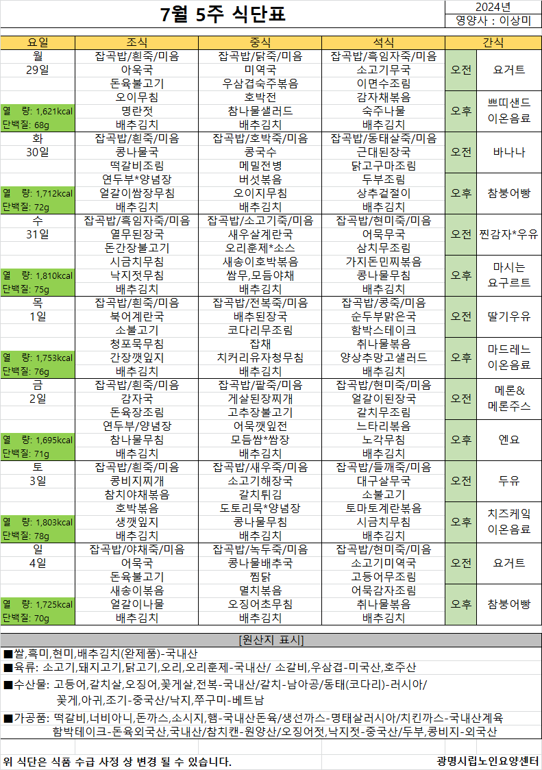 2024³â 7¿ù 5ÁÖÂ÷ ½Ä´ÜÇ¥