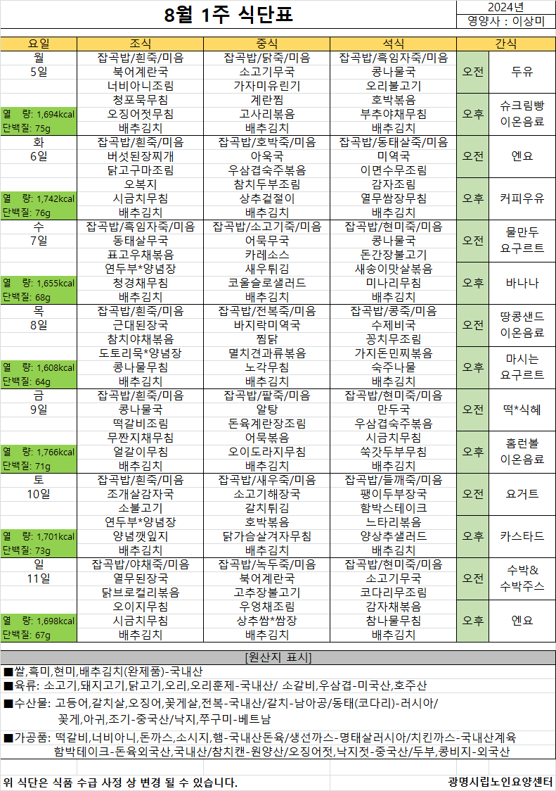 2024³â 8¿ù 1ÁÖÂ÷ ½Ä´ÜÇ¥