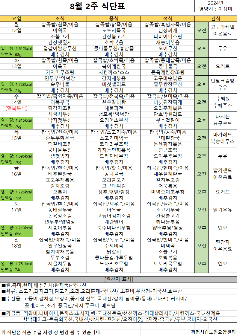 2024³â 8¿ù 2ÁÖÂ÷ ½Ä´ÜÇ¥