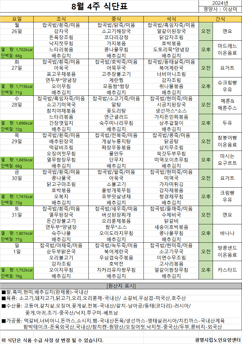 2024³â 8¿ù 4ÁÖÂ÷ ½Ä´ÜÇ¥