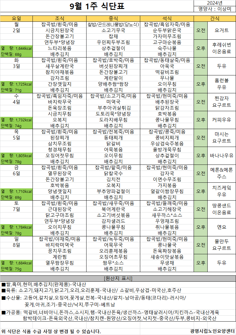 2024³â 9¿ù 1ÁÖÂ÷ ½Ä´ÜÇ¥