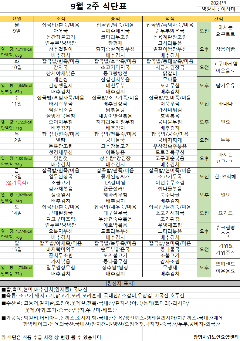 2024³â 9¿ù 2ÁÖÂ÷ ½Ä´ÜÇ¥