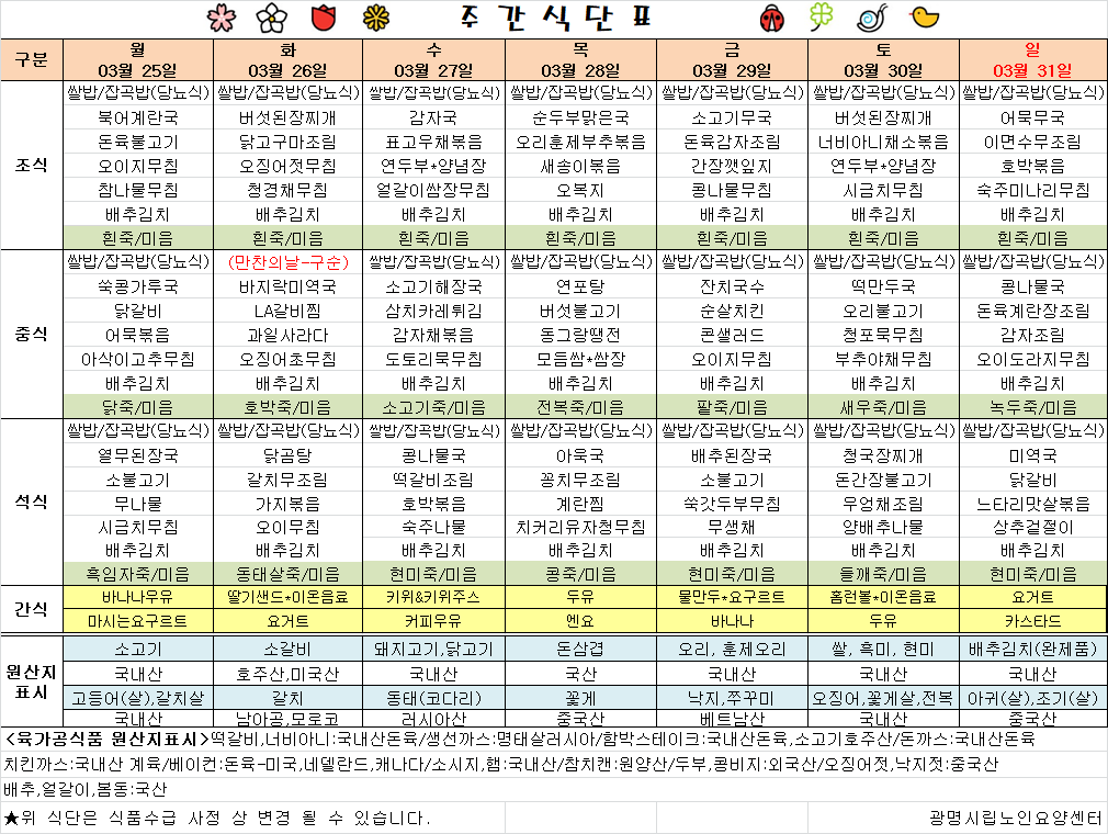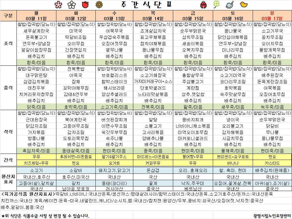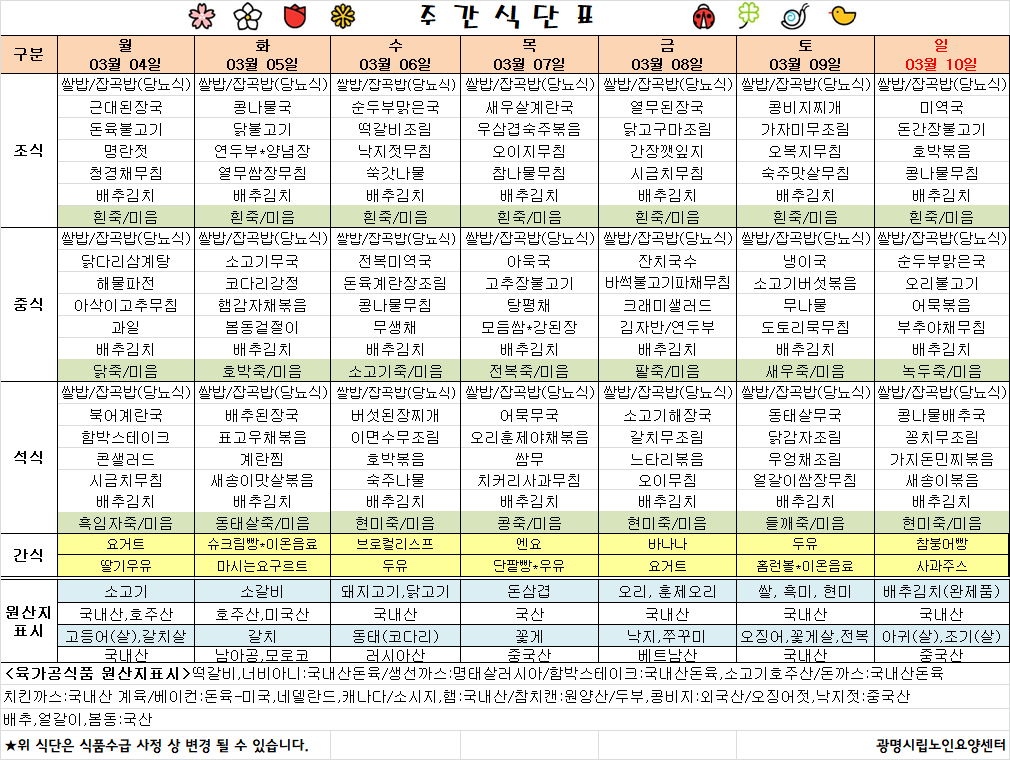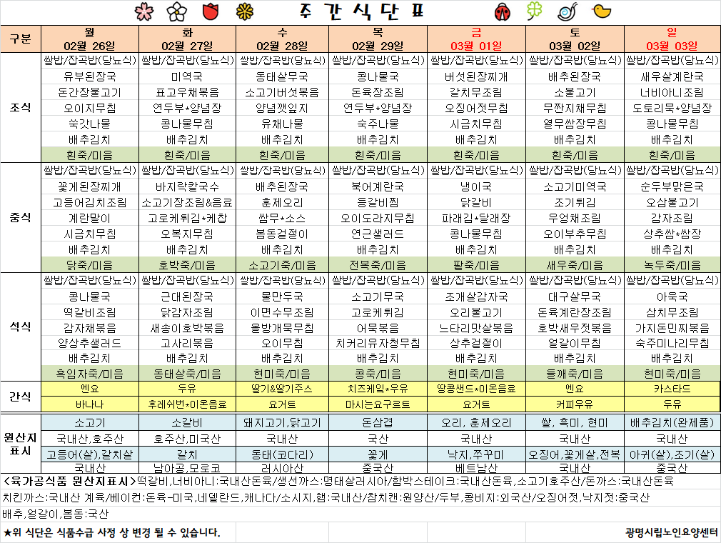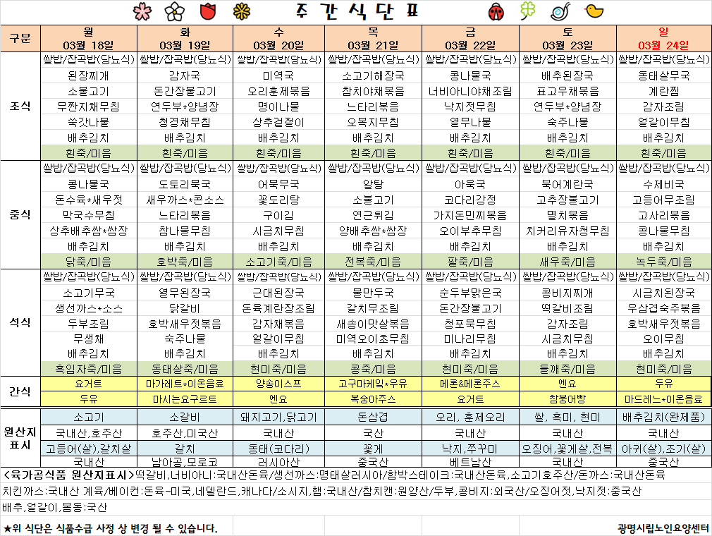 2024³â 3¿ù 1ÁÖÂ÷ ½Ä´ÜÇ¥