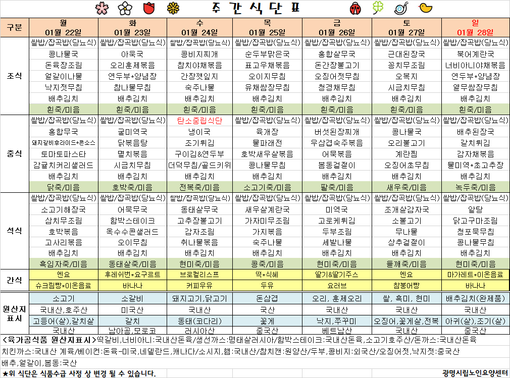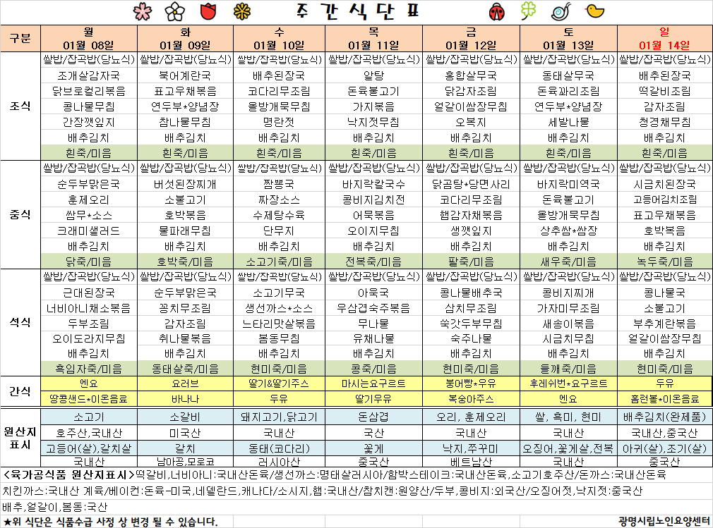 2024³â 1¿ù 2ÁÖÂ÷ ½Ä´ÜÇ¥