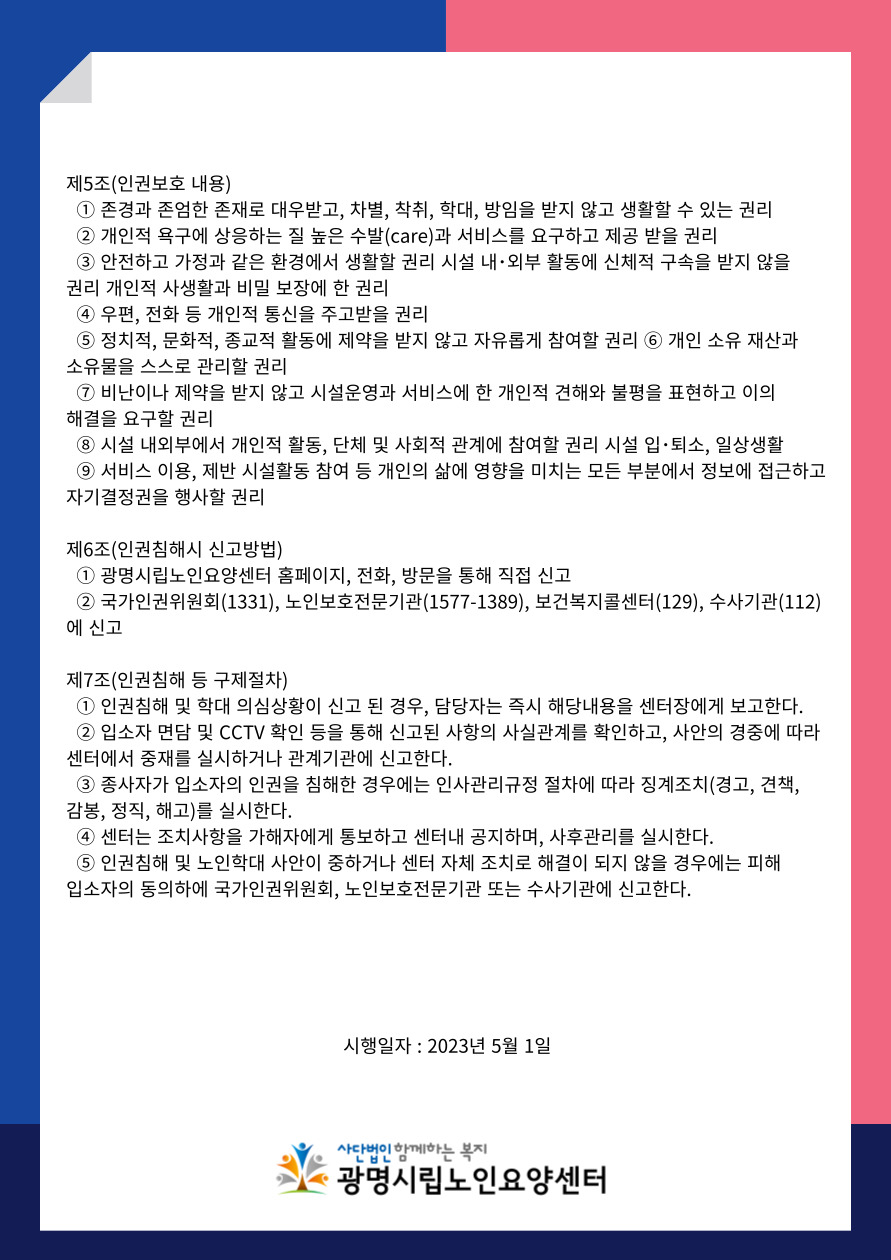 ±¤¸í½Ã¸³³ëÀοä¾ç¼¾ÅÍ´Â ³ëÀÎÀ뱂 ¹× ³ëÀÎÇдë¿Í °ü·ÃÇÏ¿© À§¿Í °°ÀÌ ÁöħÀ» ¼ö¸³ÇÏ°í ¿î¿µÇϰí ÀÖ½À´Ï´Ù.