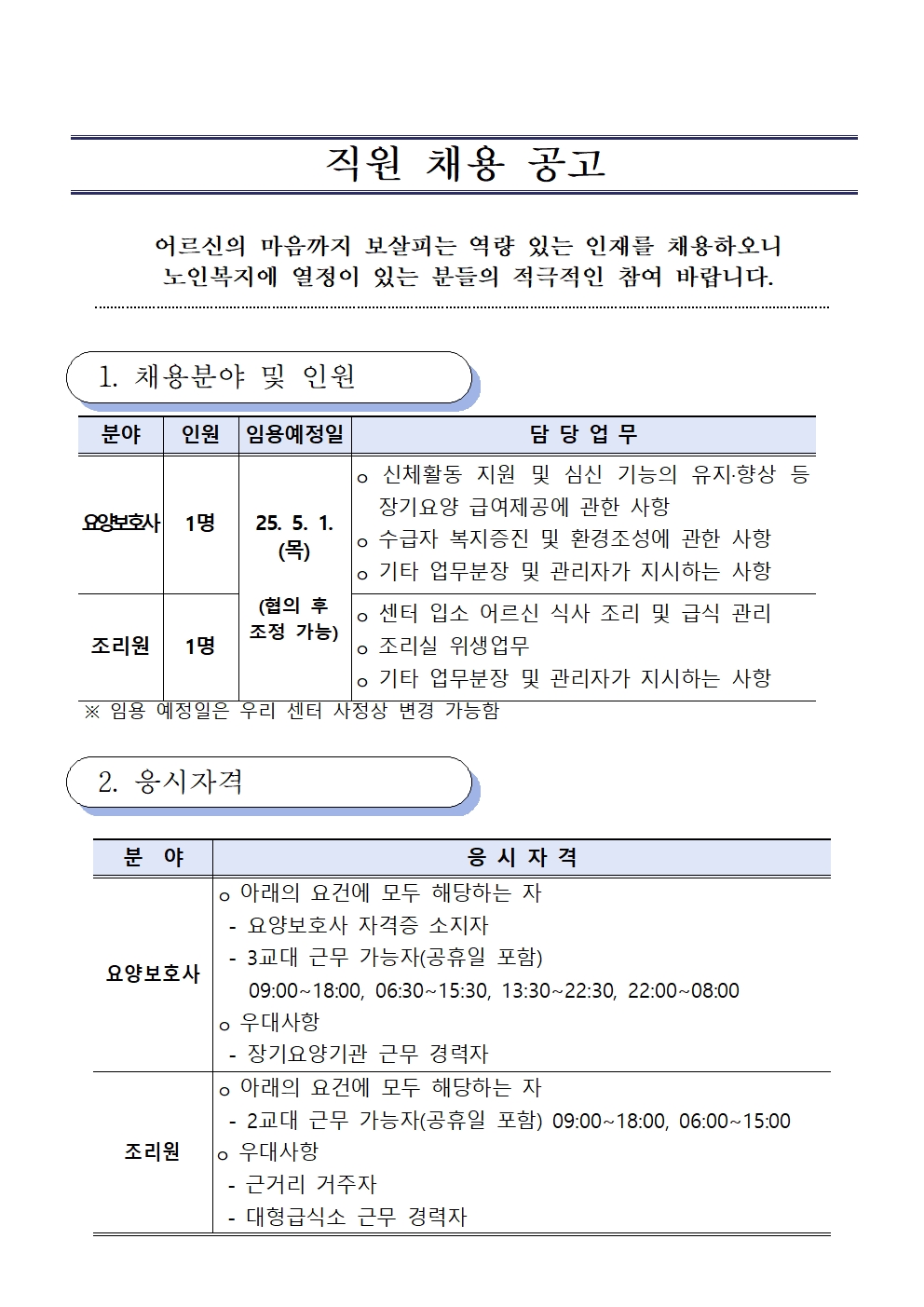 Á÷¿øÃ¤¿ë°ø°í(¿ä¾çº¸È£»ç.Á¶¸®¿ø)_250402.hwp