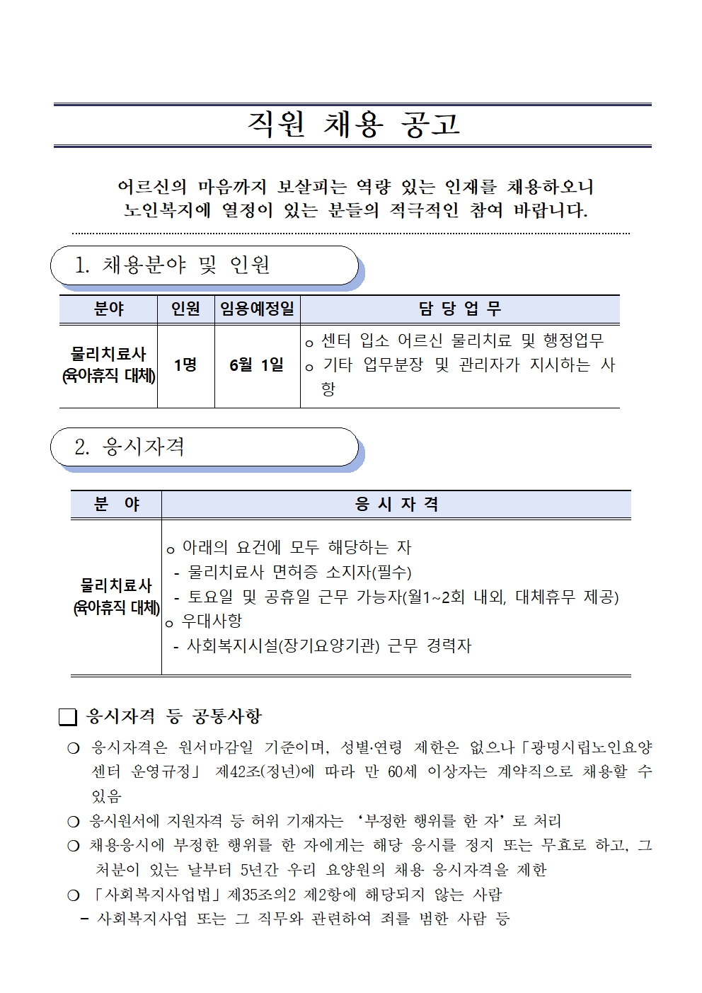 ±¤¸í½Ã¸³³ëÀοä¾ç¼¾ÅÍ Á÷¿ø(¹°¸®Ä¡·á»ç-À°¾ÆÈÞÁ÷´ëü) ä¿ë °ø°í